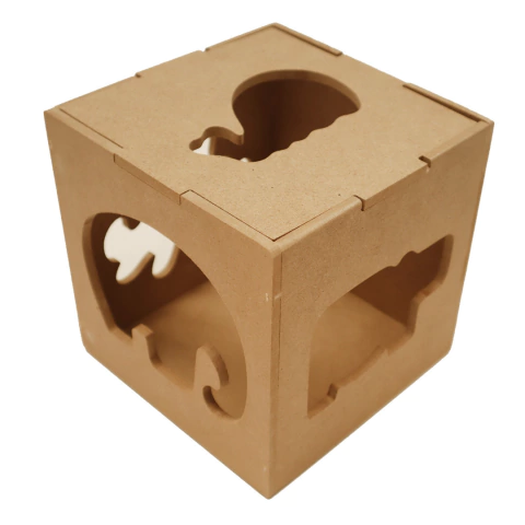 Cubo de Fibrofacil de 16 x 16 cm en 6 mm con animales calados